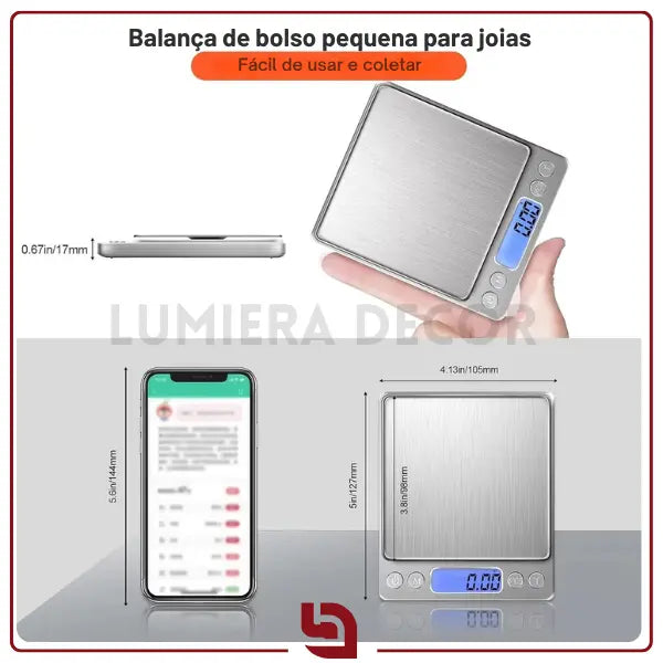 Compacta, elegante e recarregável por USB, ela traz leitura rápida no display LCD iluminado e sensibilidade de 0,01g – garantindo resultados exatos para cozinha ou uso pessoal.
