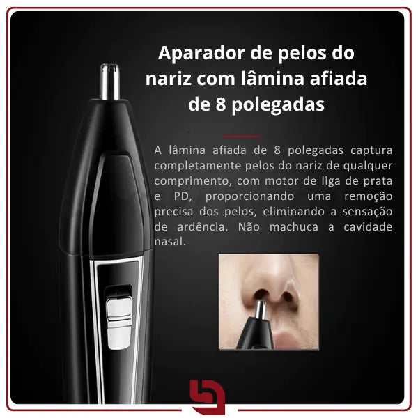 • Versatilidade total: barbeia, apara, contorna e remove pelos indesejados do nariz, bigode e costeleta com um único aparelho.