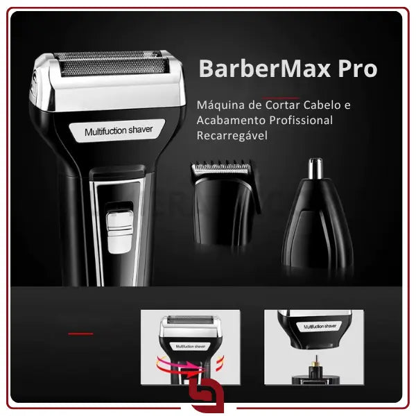 Com exclusivo sistema 4 em 1, o aparelho acompanha cabeças para barbear, aparar barba e cabelo e remover pelos do nariz, tudo recarregável e fácil de usar, com desempenho silencioso e portátil – ideal para uso em casa, viagens e academia.