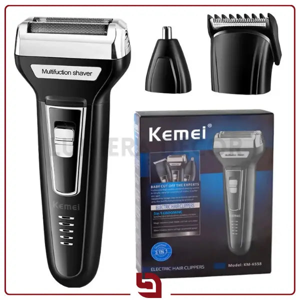 ShaveMaster Kemei – Barbeador Elétrico 4 em 1 Recarregável para Barba, Cabelo e Nariz