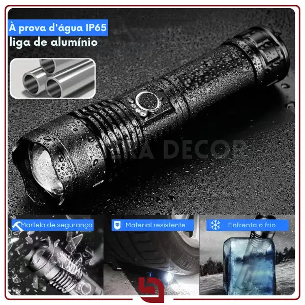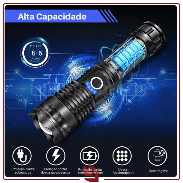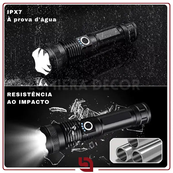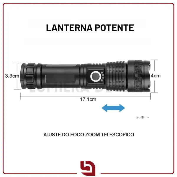 Zoom telescópico: ajuste rápido de foco para iluminar áreas amplas ou se concentrar em pontos distantes, proporcionando versatilidade em situações diversas.