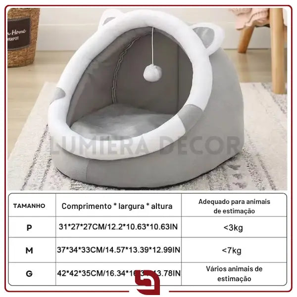 Projetada em formato de toca com orelhinhas, estrutura firme e interior macio, ela proporciona aquele abrigo acolhedor que todo pet ama: perfeito para relaxar, dormir quentinho ou brincar, sendo dobrável, lavável e fácil de transportar.