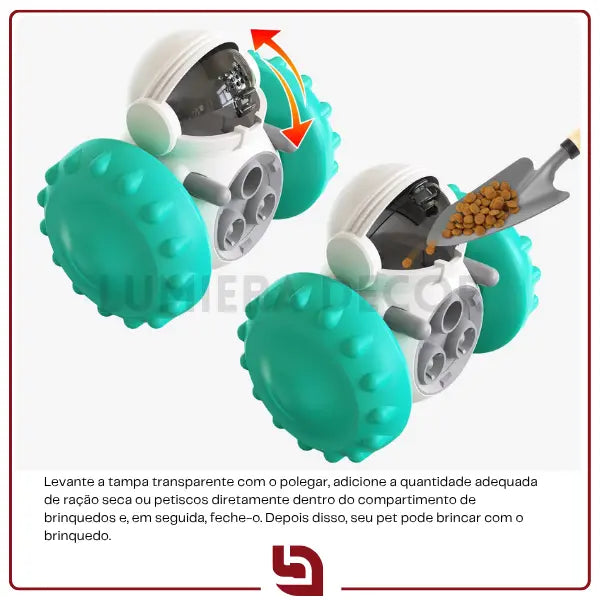 Com design inovador, rodas de borracha texturizadas e compartimento para petiscos ou ração, desafia o animal a usar o faro e a mente para conquistar cada prêmio, tornando refeições e recompensas muito mais interessantes.