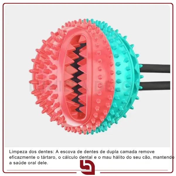 Saúde bucal: as texturas e cerdas da bola auxiliam na limpeza dos dentes e massageiam as gengivas durante as mordidas.