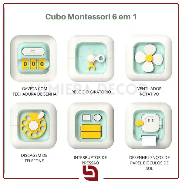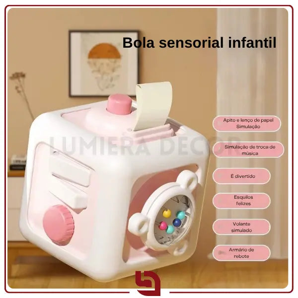 Funções: 6 atividades sensoriais e motoras em um só cubo