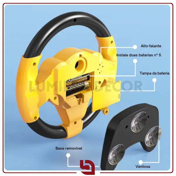 Com design de volante esportivo, luzes, sons realistas e botões interativos, transforma qualquer ambiente em uma aventura de direção, promovendo brincadeiras criativas e aprendizado motor desde cedo.