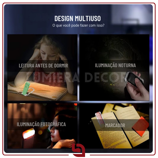 • Proteção para os olhos: luz direcionada, suave e sem oscilações, diminui a fadiga ocular e protege a visão mesmo nas leituras mais intensas, sendo segura até para crianças.
